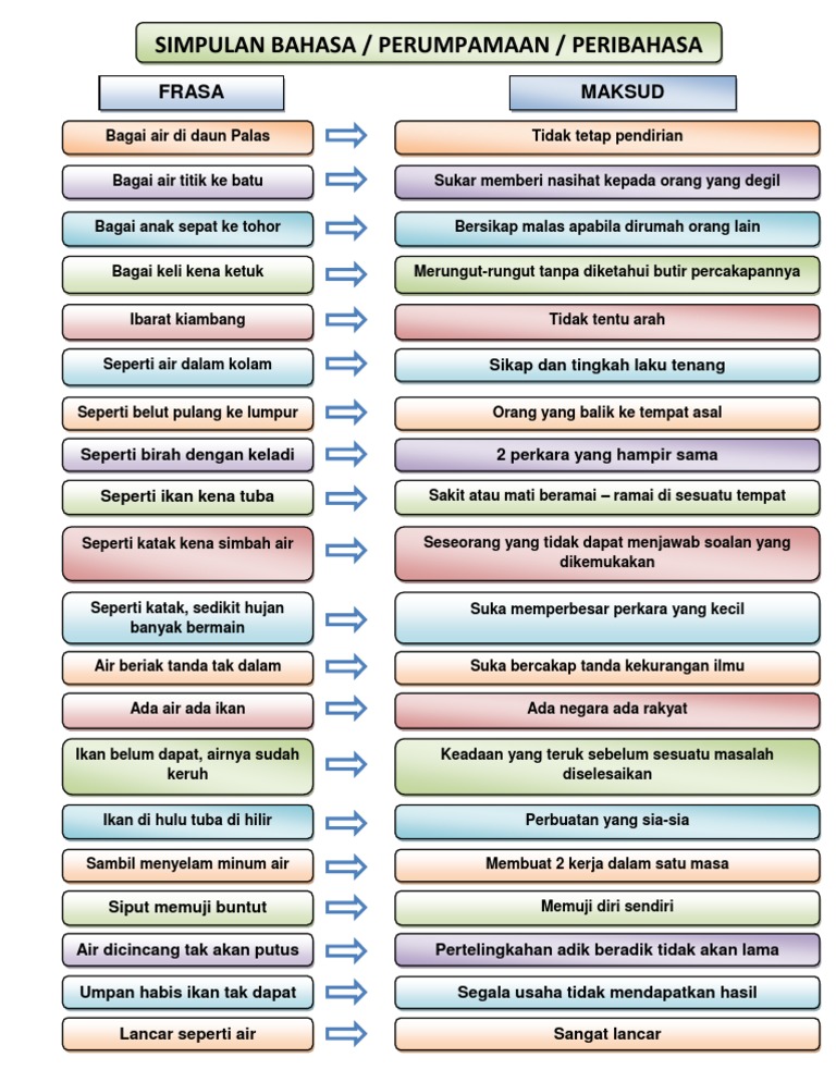 Panduan Pengajaran Bahasa Melayu Sk Tahun 6 from data03.123doks.com Melakukan pekerjaan yang mustahil dapat dilaksanakan. Bagai air titik ke batu: Bagai air titik ke batu. Bagai air dengan minyak dua hal yang tidak bisa dipersatukan. Bagai air titik ke batu sukar sekali memberi nasihat kepada orang jahat. Mengerjakan sesuatu yang sukar dikerjakan. Bagai air titik ke batu. Memberi nasehat baik kepada orang yang jahat terlalu susah masuknya.