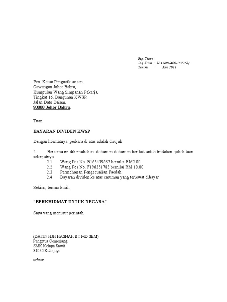 Surat Pembatalan Caruman Kwsp from imgv2-1-f.scribdassets.com Contoh surat pembetulan caruman kwsp. We did not find results for: Check spelling or type a new query. Maybe you would like to learn more about one of these?